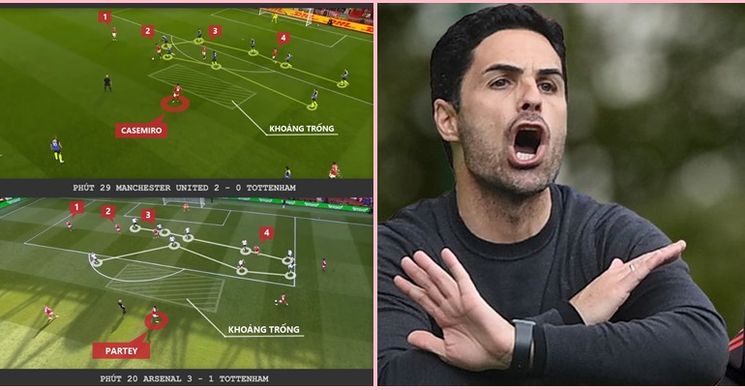 Hai tình huống khá tương tự nhau xuất hiện ở phút 29 trận Manchester United 2-0 Tottenham và phút 20 trận Arsenal 3-1 Tottenham. Rõ ràng, Mikel Arteta và Erik Ten Hag đã có chung…